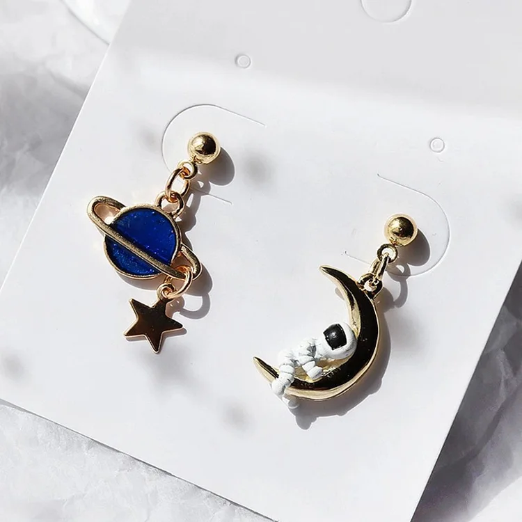 Add some style to your everyday life with these gorgeous earrings. The Astronaut and Planet earrings are a great piece to add to your collection, with a perfect mix of both space and star themed elements. The design elevates your style to the universe with orbitals, stars and planets.
