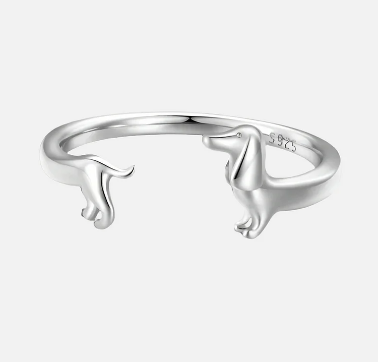 Celebrate your love for your four-legged friend with our endearing dachshund wrap ring. Crafted from premium 925 sterling silver, this charming piece wraps lovingly around your finger with its playful wiener dog design. Available in classic silver or elegant plated finishes, this adjustable ring adapts perfectly to your finger size while making a delightful statement about your passion for these beloved pets. The tarnish-resistant finish ensures your precious memento stays as bright as your love for dachshunds.