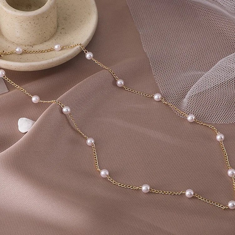 A: The Dainty Pearl Necklace is made from high quality gold plated alloy and imitation pearls.