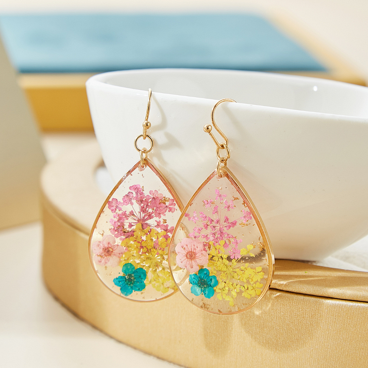 Introduce nature's elegance to your wardrobe with the Dried Flower Earrings, a stunning display of real pressed flowers encapsulated in crystal-clear resin. Each pair is a unique piece of art, celebrating the timeless beauty of nature preserved forever.