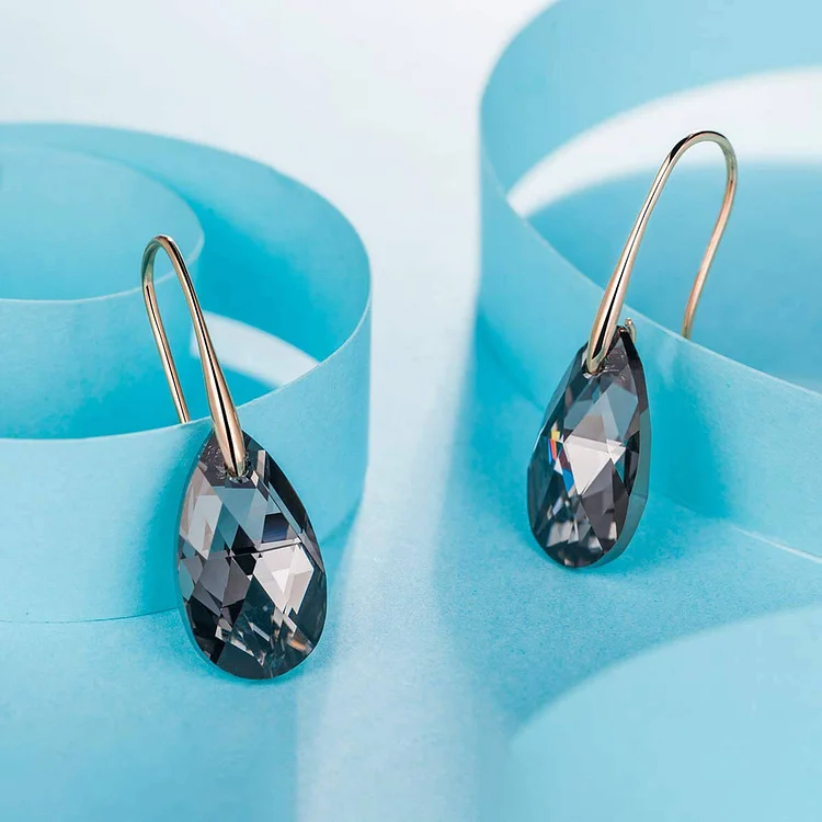 A: The Drop Dangle Crystal Earring is made from high quality Swarovski Crystal with rose gold ear hook.