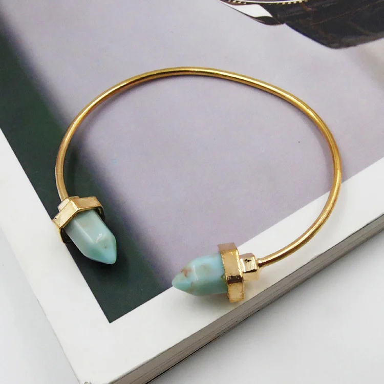 A: The Hexagonal Boho Bracelet is made with high quality gold plated alloy, and highly-durable synthetic stones.