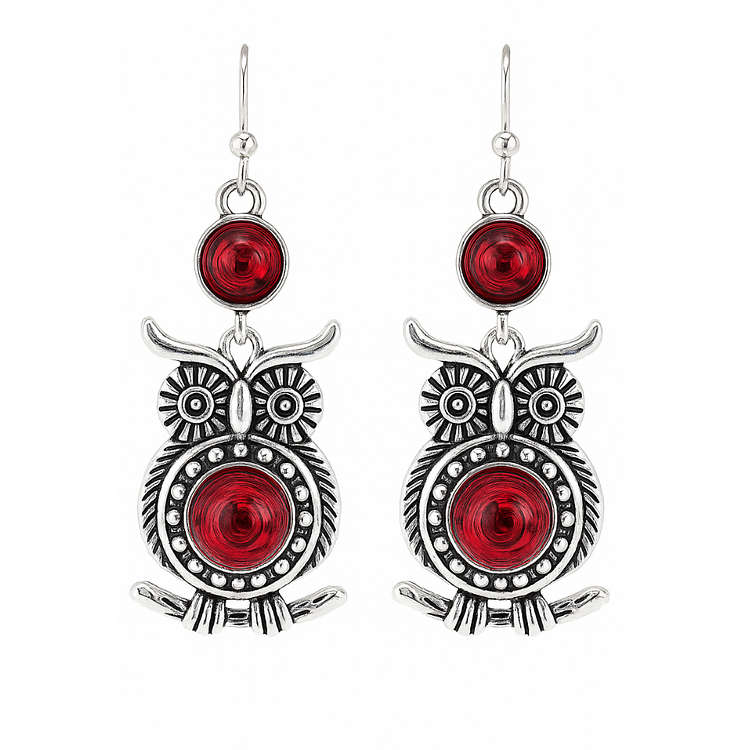 Maddison -Vintage eulen earrings in red | Silver