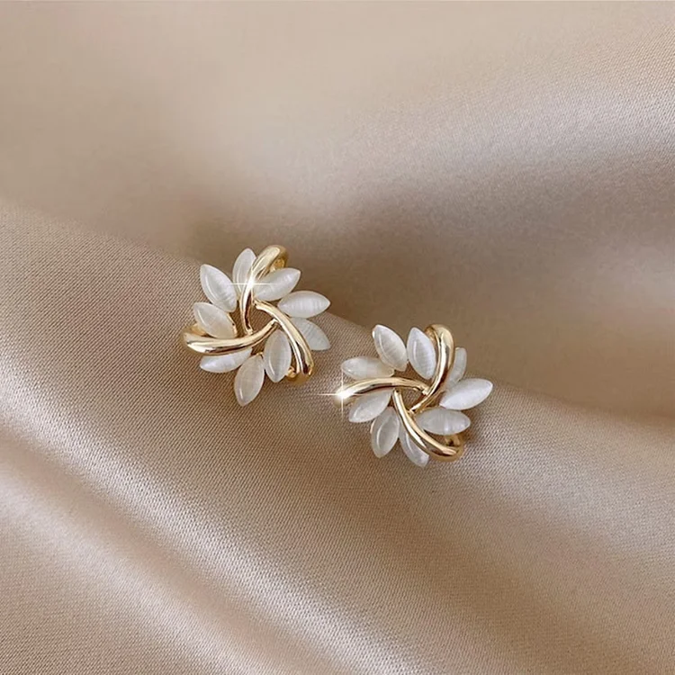 A: These opal petal stud earrings are made from high quality gold-plated copper, natural stone and 925 silver needle.