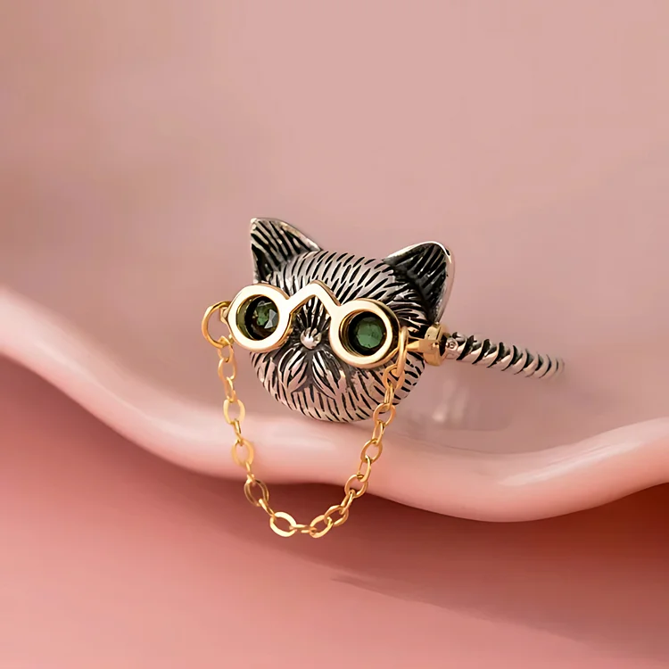 QUIRKY CAT GLASSES RING (ADJUSTABLE)