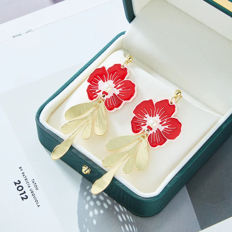 RED BLOSSOM EARRINGS (PAIR)