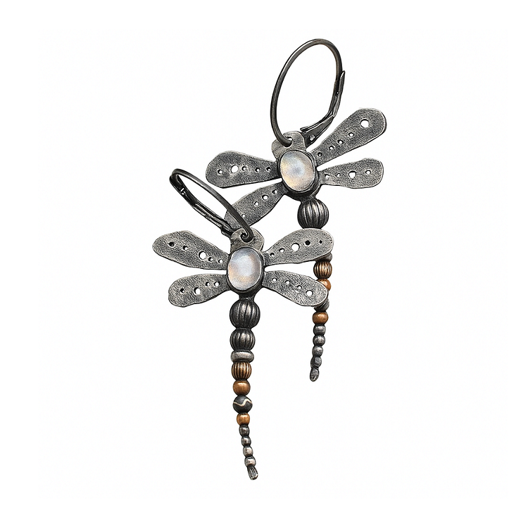Salma - Vintage dragonfly earrings with moonstone | Silver