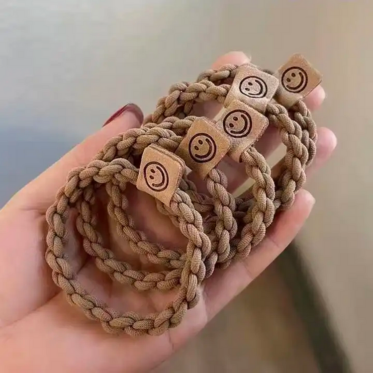 Brighten up your day with our Smiley Face Hair Tie, a delightful accessory that adds a touch of happiness to your hairstyle. This five-pack features high elastic head ropes in neutral colors, perfect for any outfit or occasion.