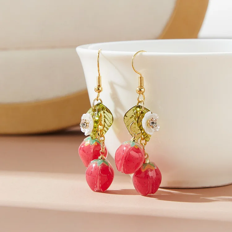Crafted with attention to detail, each strawberry charm showcases the rich red hue and delicate green leaves, bringing a burst of color and cheer to any ensemble. Whether you're dressing up for a casual day out or looking to add a playful element to your evening attire, these earrings are sure to brighten your style.