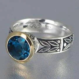 Vintage Blue Glass Silver Leaf Ring