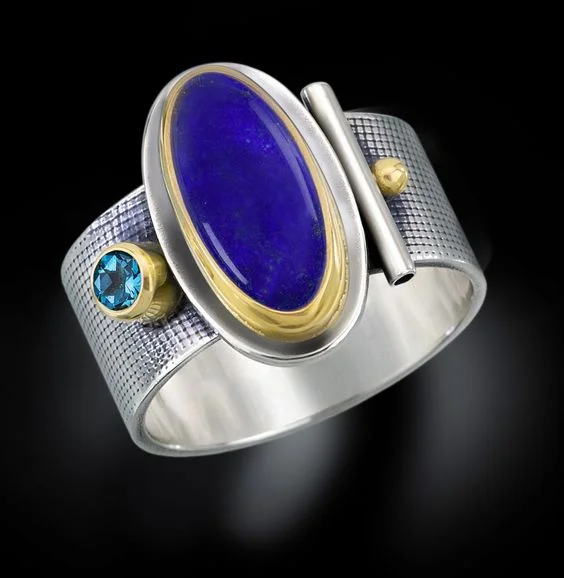 Vintage Blue Oval Stone Silver Ring