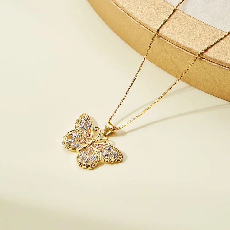Introducing the Vintage Butterfly Necklace, a stunning piece that captures timeless beauty and elegance. This beautiful gold necklace features a delicate butterfly pendant, adding a touch of grace to any outfit.