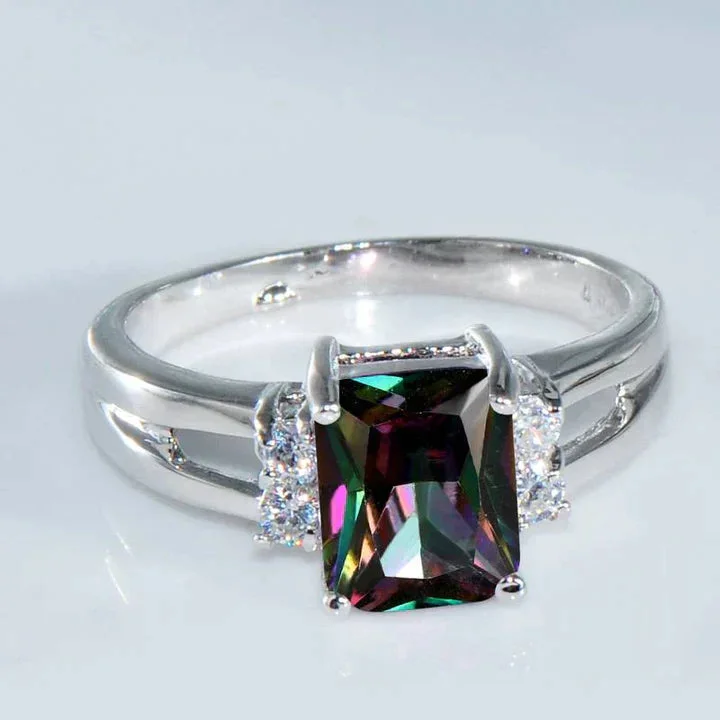Vintage Colorful Dark Glass Silver Ring
