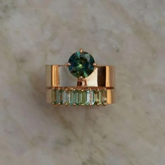 Vintage Green Crystaline Gold Ring