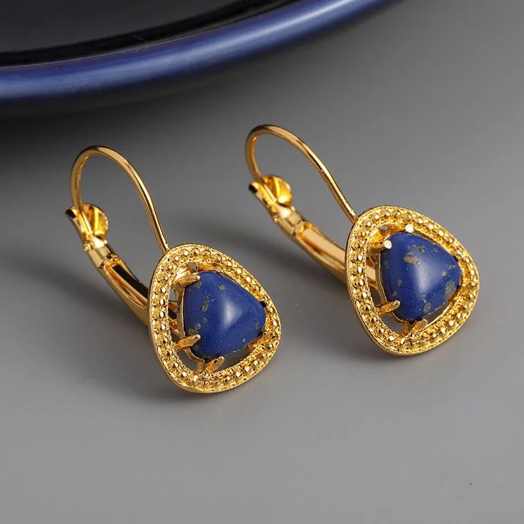 Vintage Handmade Curved Inlaid Gemstone Earrings