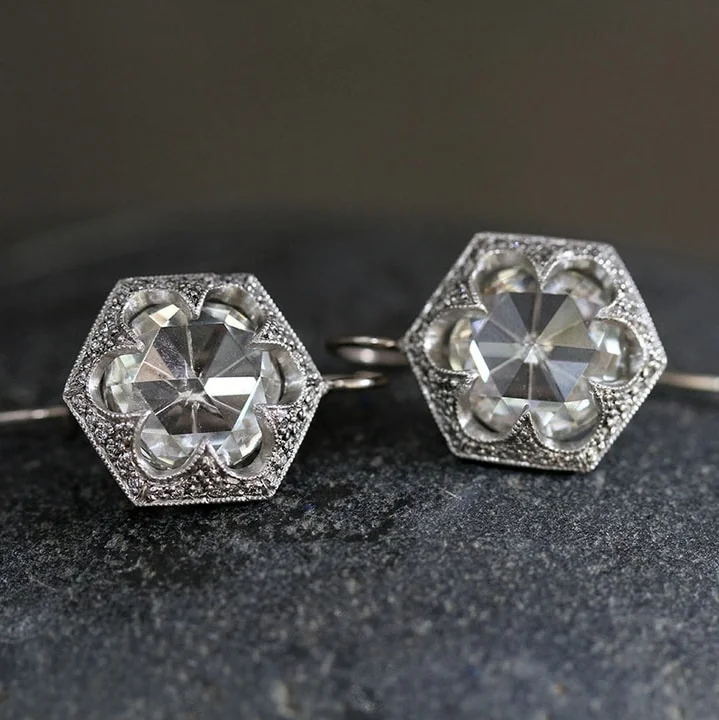 Vintage White Rounded Glass Earrings