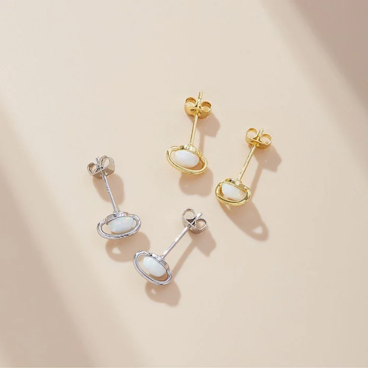 These stunning earrings feature mesmerizing white fire opals, resembling beautiful Saturn planets, for a celestial touch to your look. Crafted with care and made with precision, these minimalist earrings are not only fashionable but also create a long lasting impression. Whether you're dressing up for a special occasion or adding a touch of elegance to your everyday attire, these earrings are the perfect choice.